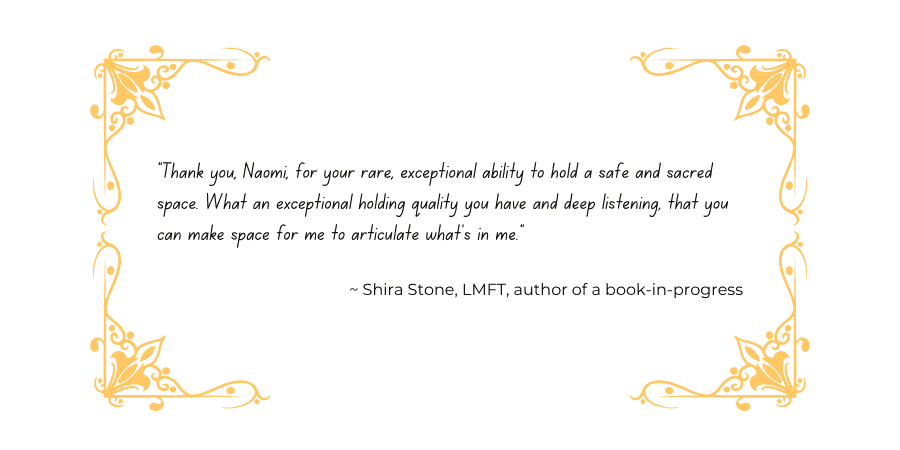 “There are no words to convey the breadth and depth of Naomi's help as I gave birth to a book that is both a memoir and a transformative map of healing.